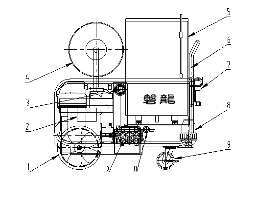 | 9.万向轮 | 10.高压泵 | 11.泄压调压阀 |